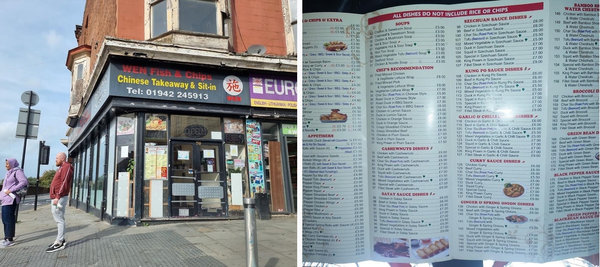 Welcome to Wen Menu, your go-to destination for authentic Chinese cuisine in Wigan. Located conveniently near both train stations, we offer a casual atmosphere perfect for solo dining, lunch, or dinner. Our menu features a delightful range of dishes including piping hot egg fried rice, flavorful curries, and delicious satay, all at an affordable price range of £10–20. Enjoy our quick takeaway service or cozy dine-in experience, and don’t hesitate to make a reservation. With friendly staff and a commitment to fresh, tasty food, Wen Menu is the perfect choice for your next meal or late-night craving.Customers consistently rave about the fresh and flavorful dishes served at Wen Menu. Many highlight the generous portion sizes that make each meal a satisfying experience. Popular items like the salt and pepper chicken and the egg fried rice are frequently recommended, with visitors enthusiastic about their rich flavors and perfect cooking. The excellent service is another point of admiration, with both dine-in and takeaway experiences being handled with care and friendliness. Convenience is a major plus here, especially being located near the train stations.
